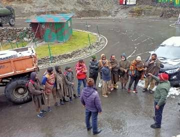 Poonch: Authorities here on Saturday afternoon rescued 12 persons, who were stuck near Pir Ki Gali on Mughal road, which has been closed by the authorities in wake of the snowfall.