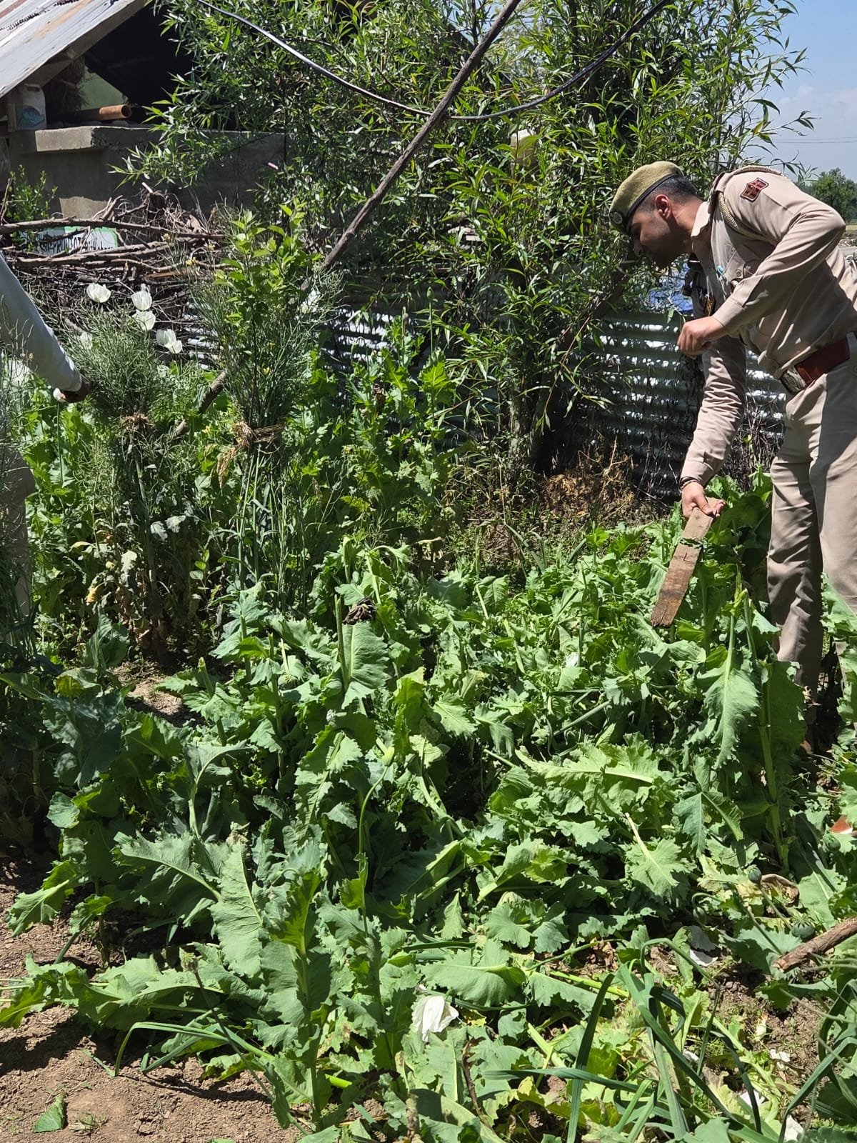 Acting on reliable information, Police Post Sangam detected illegal cultivation of opium poppy at the residence of Bashir Ahmad Wani of Check Panjpora. During the search, police found poppy plants growing inside the residential compound, while dried poppy straw (Fukki) was also recovered from within the house.