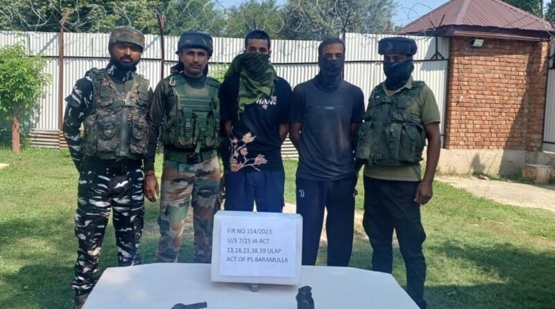 “During preliminary investigation it came forth that both the individuals are hybrid terrorists and are affiliated with the banned terrorist organisation of LeT outfit and had collected the arms & ammunition for carrying terrorist activities in Town Baramulla in view of forthcoming Independence Day,” police said, adding that Case under Indian Arms Act & UA (P) Act was registered in Police Station Baramulla and investigations were taken up—(KNO)