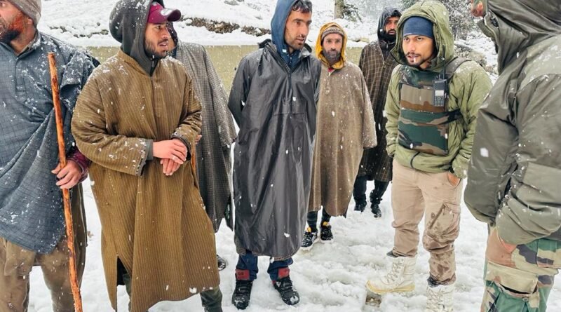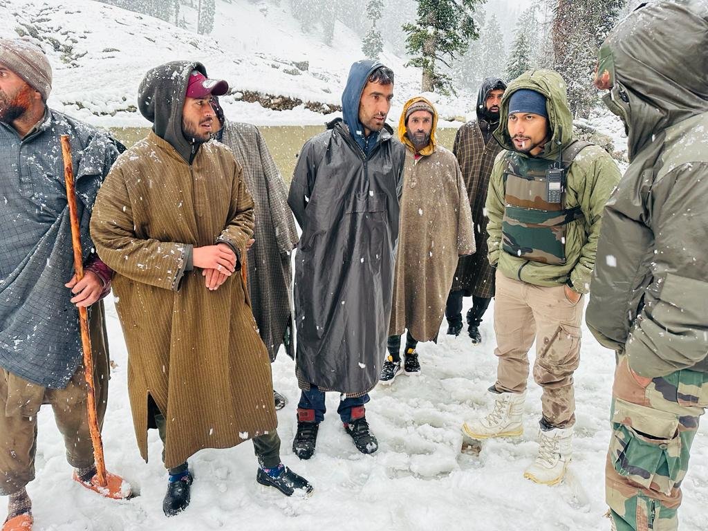 Amidst heavy rainfall in plains and snowfall in higher reaches of Kashmir valley, 19 Rashtriya Rifles (RR) Larnoo COB along with CRPF 164 Batallion rescued at least 30 families who were stuck at higher reaches of Margan Top along with their livestock.