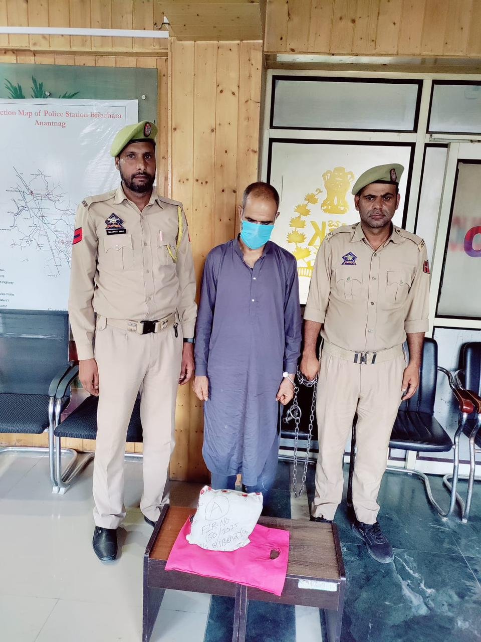In a separate operation, a police team from Police Post Sangam laid a naka at Nati Pora Sangam Bund. One individual approaching from Nati Pora towards NHW, carrying a polythene bag, attempted to flee upon seeing the police party. However, he was tactfully apprehended by the naka party.