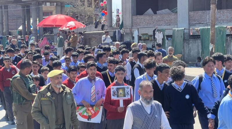 Anantnag: Mar 27: In a continued effort to combat drug abuse and raise awareness among the public, Anantnag Police today organised a Drug Awareness Rally in the district. The rally commenced from Wazir Bagh Anantnag, proceeded to Lal Chowk Anantnag, and culminated back at Wazir Bagh.
