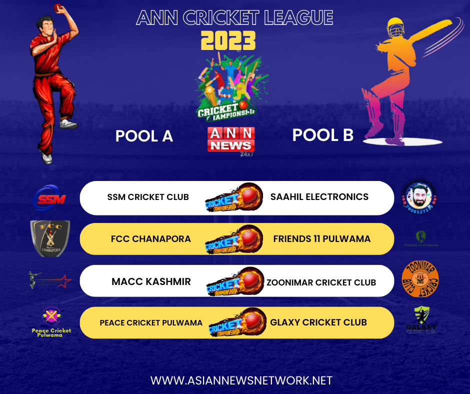 The highly anticipated first live cricket league in Kashmir is set to captivate audiences as the fixture for Pool A and Pool B has been announced for the ANN Cricket League. The remaining two teams for this pool will be announced shortly. While the specific match dates are yet to be revealed, cricket enthusiasts can expect thrilling encounters between the teams competing in each pool.