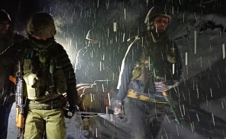Vilgam Army Camp on Saturday rescued a pregnant woman amid Heavy snowfall from Khanbal to PHC Vilgam of North Kashmir’s Kupwara District. At 10:40 PM, Army Camp Vilgam received a distress call from SHO Vilgam and Mr Mushtaq Ahmed Gagi, husband of the pregnant woman, Mrs Safoora Begum, requesting for urgent rescue and medical evacuation of the pregnant lady who was in critical condition.
