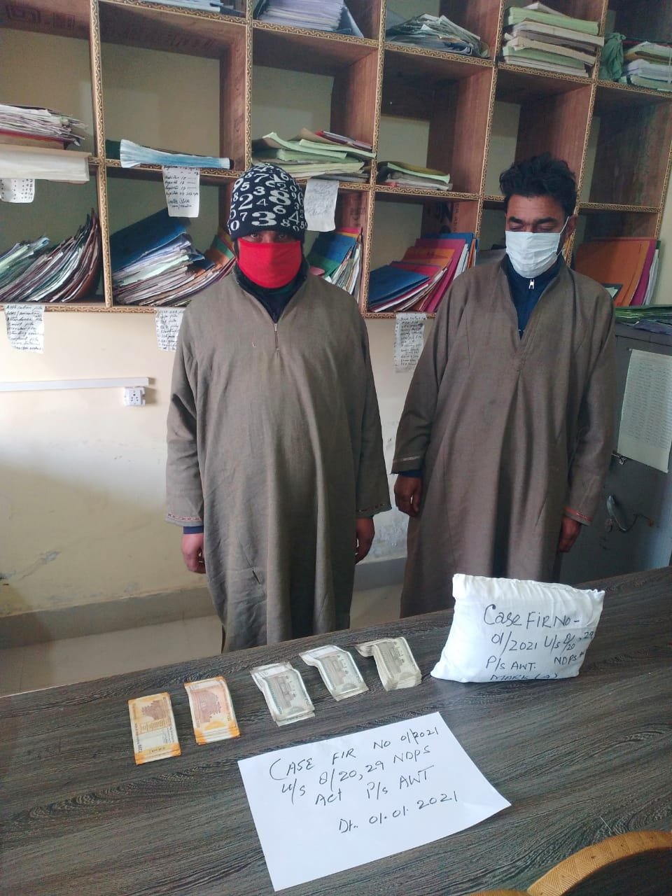 Awantipora: Awantipora police claimed to have arrested two drug peddlers from Reshipora Bunpora near irrigation gauge in Awantipora town of Pulwama district in South Kashmir.