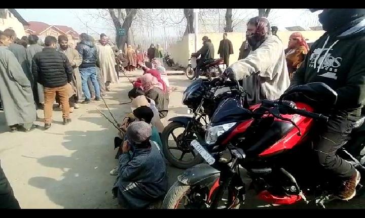 The protestors staged a sit-in on vital Beerwah-Budgam road and blocked the vehicular movement.