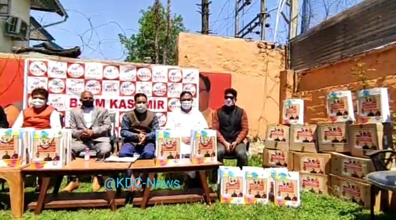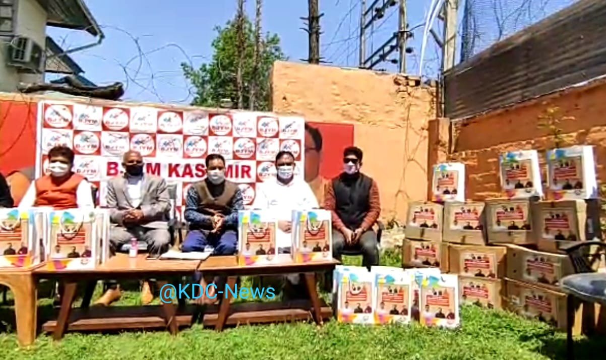 According to News Agency Kashmir Dot Com (KDC) Bharatiya Janta Party (BJP) distributed four thousand and five hundred COVID-19 kits of Jammu and Kashmir hospital Indian Systems of Medicine (ISM) supply medicines among BJP district youth presidents for further distribution in their respective areas at party office at Jawahar Nagar area of Kashmir Capital Srinagar.