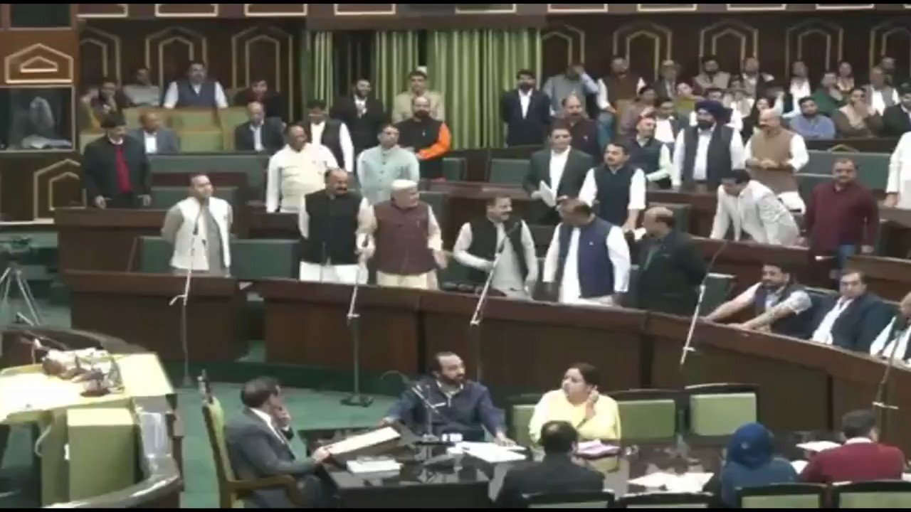 The House soon plunged into chaos wtih heated verbal exchanges between NC and BJP members. Some members also used derogatory language against each other. Speaker Abdul Rahim Rather later expunged the remarks.