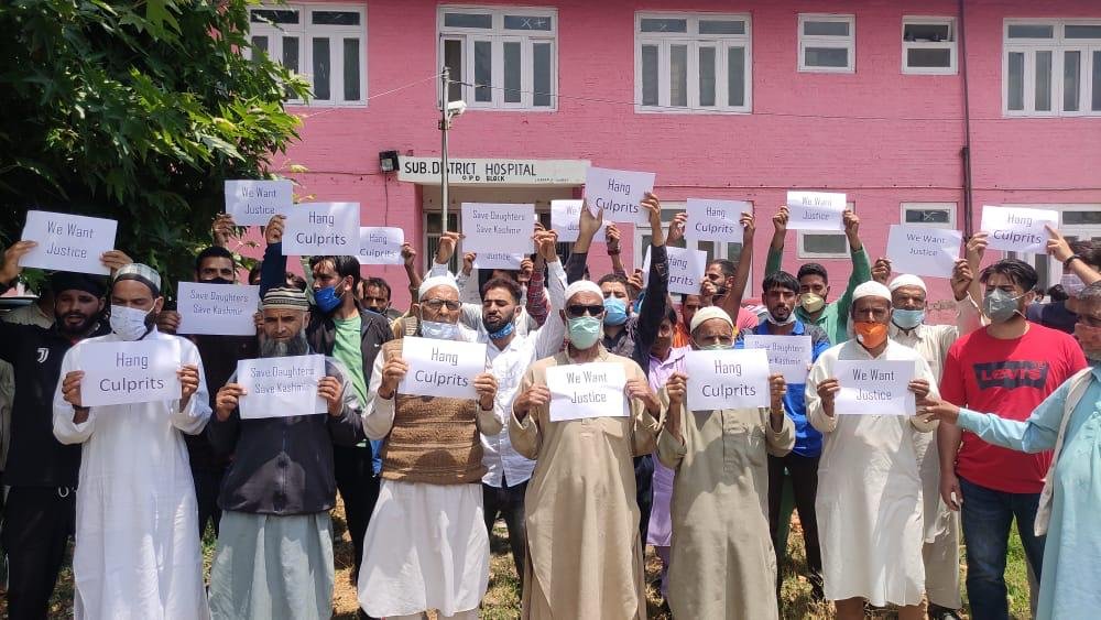 The family members of the deceased lady held a protest outside sub-district hospital Charar-i-sharief while demanding justice.