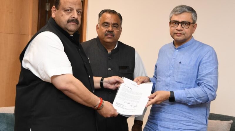 NEW DELHI FEBRUARY 22- BJP National General Secretary and Incharge for Jammu and Kashmir UT, Mr. Tarun Chug and senior leader Mr Devender Singh Rana today called on the Union Railway Minister Mr Ashwini Vaishnaw in the national capital and sough two-minute stopover of the Uttar Kranti Express and Jammu Mail at Manwal Station of Nagrota Assembly Constituency in Jammu.