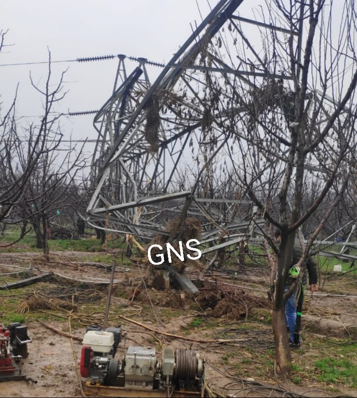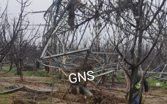 Collapse of power transmission tower damages apple trees in Shopian