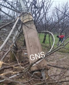 Srinagar, Mar 16: The collapse of a power transmission tower in an orchard at Urpora village of south Kashmir’s Shopian district has caused a huge damage to the apple trees.