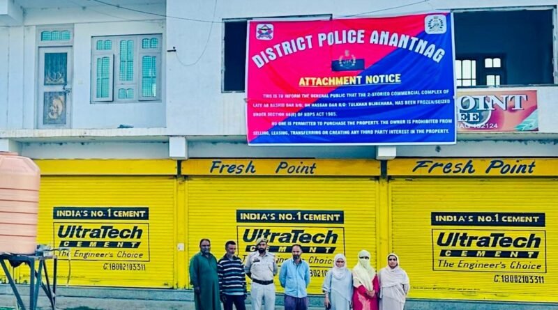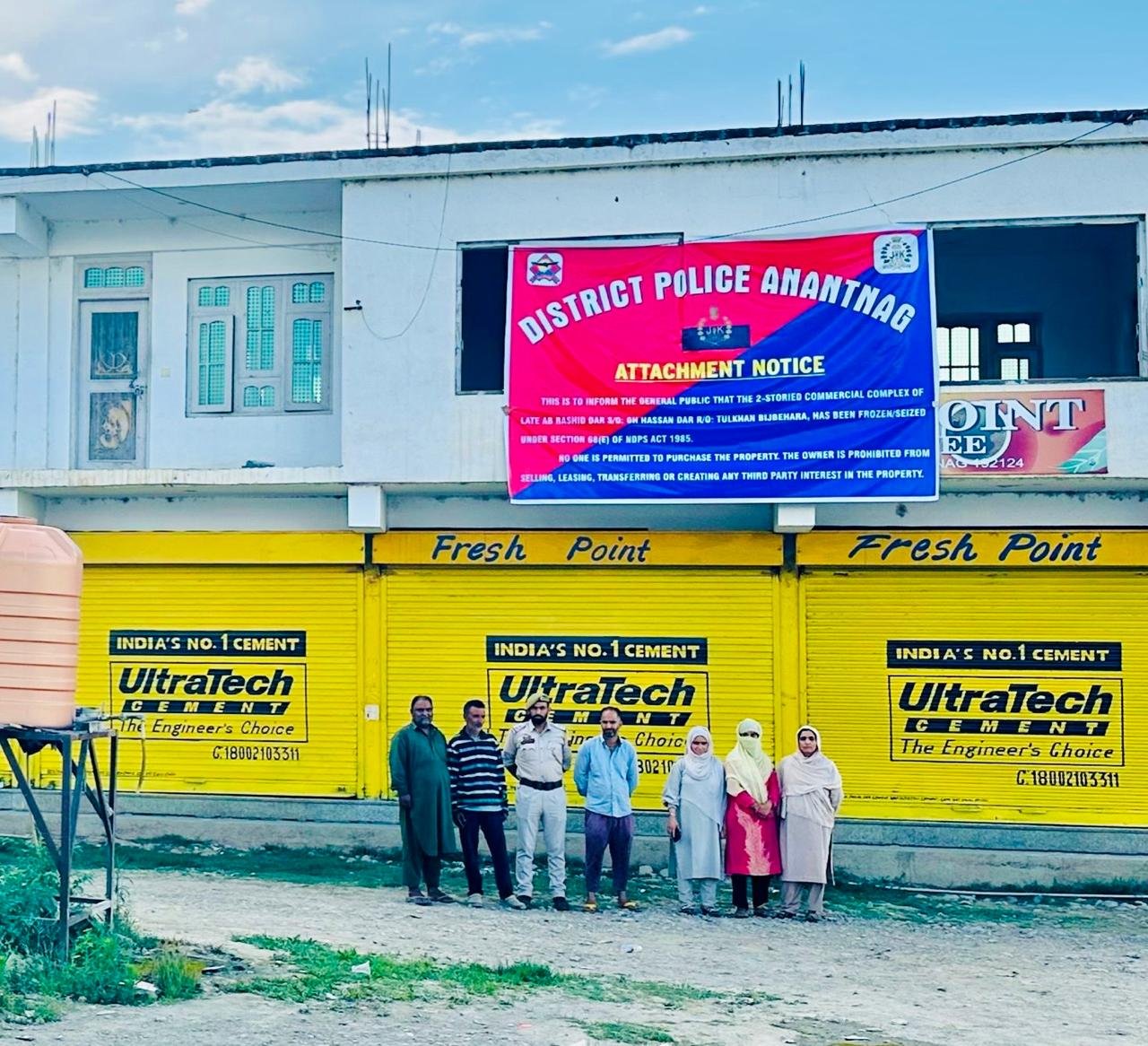 In a significant blow to Drug traffickers, Bijbehara Police Station has attached a Commercial Complex valued at over ₹2 Crores, belonging to the late Abdul Rashid Dar of Tulkhan Bijbehara. The Property was identified as being acquired through illicit drug trade, specifically the trafficking of Narcotic drugs and Psychotropic substances.
