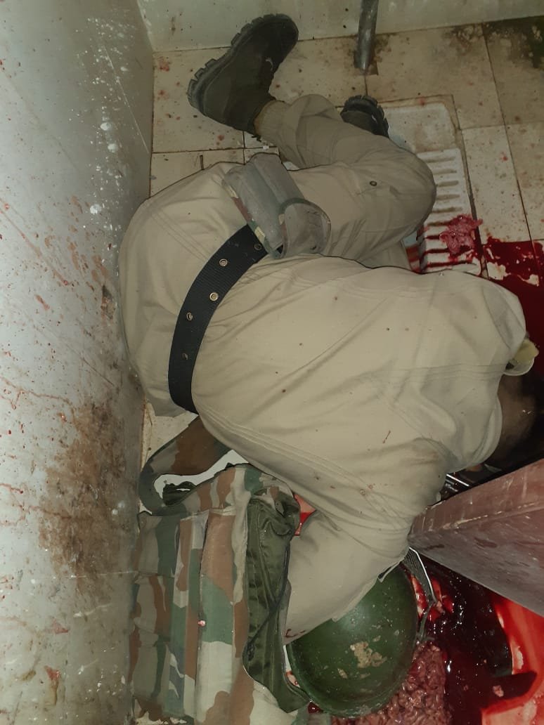 The trooper on being spotted in pool of blood was rushed to the hospital where doctors decleared him brought dead on arrival.
