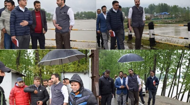 PULWAMA (KIMS) — Deputy Commissioner Pulwama Dr. Basharat Qayoom, (IAS), conducted a visit to several locations to assess the flow of water and monitor the flood control situation in the district.