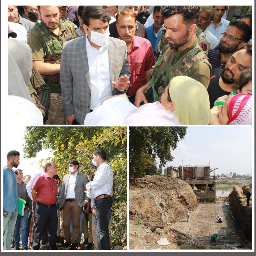 SRINAGAR, SEPTEMBER 11:- Deputy Commissioner Srinagar, Mohammad Aijaz Asad on Saturday undertook a visit to Qamarwari area of the City to have onsite inspection of pace and progress of works being carried on under construction 127-meter long Noor Jehan Bridge at Qamarwari connecting Noorbagh and other areas across the river Jehlum.