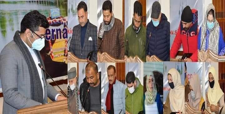 AT KULGAM: Deputy Commissioner (DC) Kulgam, Showkat Aijaz Bhat administered oath to the newly elected 14 District Development Council (DDC) members representing 14 DDC constituencies at Conference Hall Mini-Secretariat here.