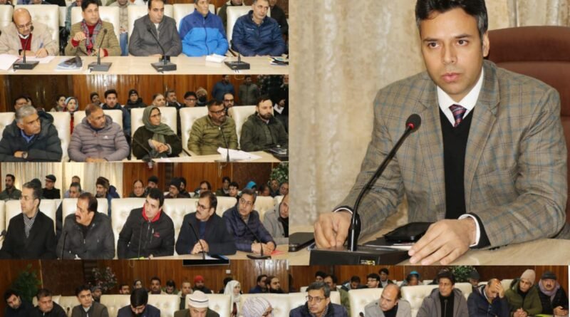 SRINAGAR, JANUARY 09:- Deputy Commissioner(DC) Srinagar, Dr. Bilal Mohi-Ud-Din Bhat today chaired an introductory meeting with District and Sectoral Officers of Srinagar here in the Meeting Hall of the DC Office Complex to set the tune for effective approach towards the holistic development of the District and ensuring prompt and quality disposal of public grievances/issues.
