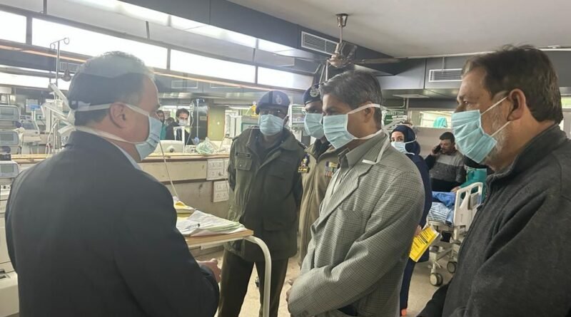 Srinagar, Nov 06 : Director General of Police (DGP) R R Swain on Monday evening visited SKIMS to enquire about the health condition of a Police Inspector Masroor Wani, who was attacked by a terrorist with pistol shots while he was playing cricket with other members of the local community.