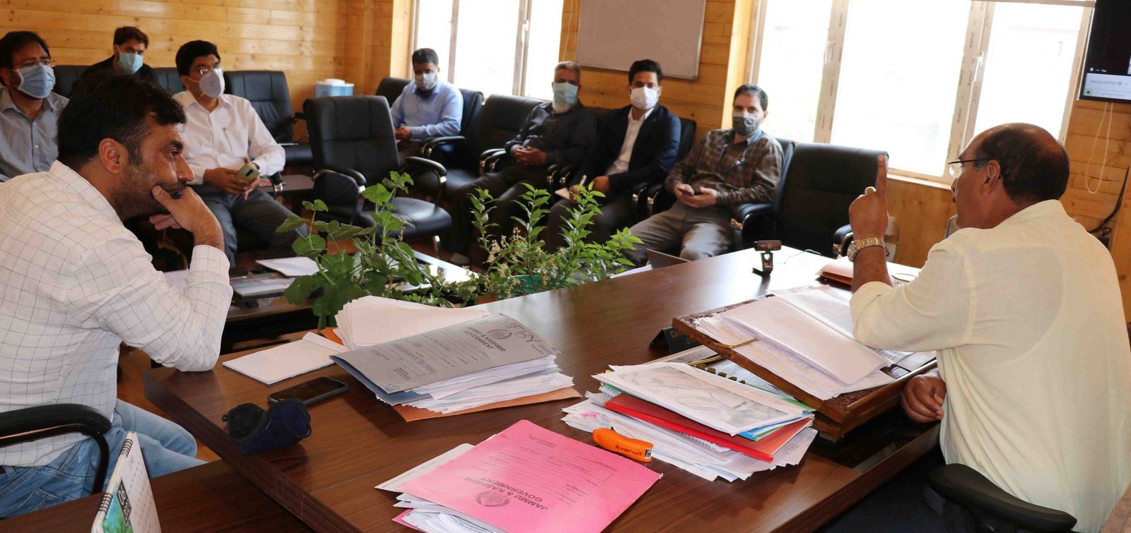 SRINAGAR, JUNE 16: The Director Agriculture Kashmir, Chowdhary Mohammad Iqbal who is also the Mission Director of Pradhan Mantri Fasal Bima Yojana (PMFBY) today reviewed the implementation of scheme in Anantnag, Udhampur, Jammu and Samba districts of UT of Jammu and Kashmir for a period of three years.