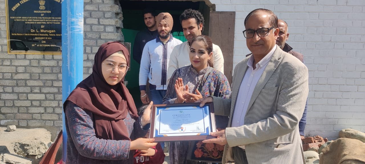 The Director visited a number of business units in the area to encourage enterprising entrepreneurs. He also felicitated Heena Rashid from district Pulwama for starting a trout fish farm at such a young age and inspiring women to pursue entrepreneurship as a career.