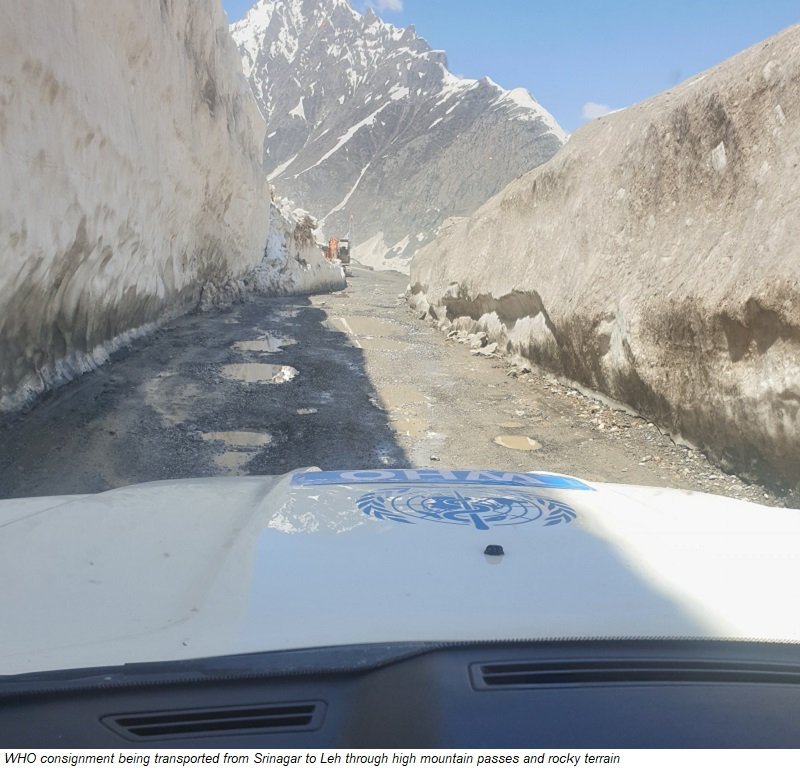 WHO vehicles carrying the resources reached Leh through a “green corridor” provided by the state traffic police at the request of Ganderbal District Superintendent of Police Mr Feroz Yahya. The inter-departmental coordination was led by Dr Suneem Khan, Nodal Officer for COVID-19 for the Central Reserve Police Force (CRPF) in Srinagar.