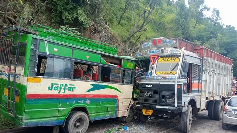 Driver among 16 injured after bus, truck suffer head-on collision in J&K’s Poonch