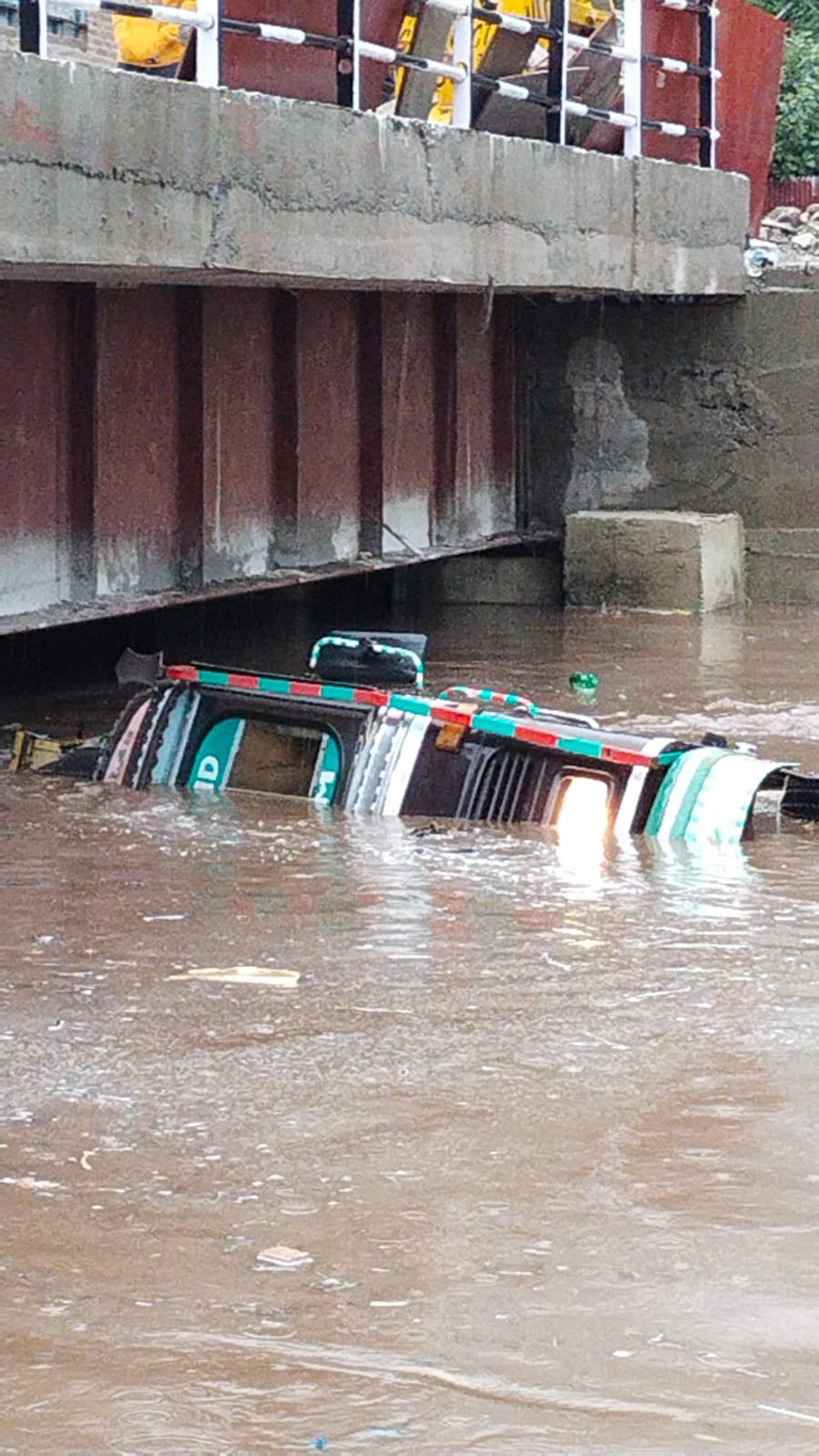 Locals, present on the spot, immediately swung into action and rescued the duo, who miraculously did not suffer any injury. Both the driver and conductor are safe.