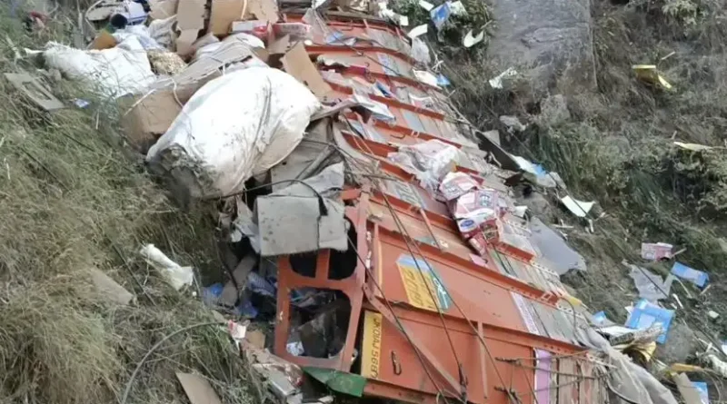 The truck, reportedly enroute from Jammu to Srinagar, veered off the road and plunged into a deep gorge near Khoni Nallah.
