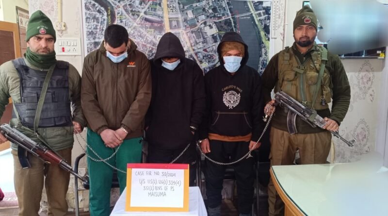 SRINAGAR (KIMS) — In significant achievement, Srinagar Police has solved a case of extortion and physical assault with the arrest of three individuals involved in the commission of crime.