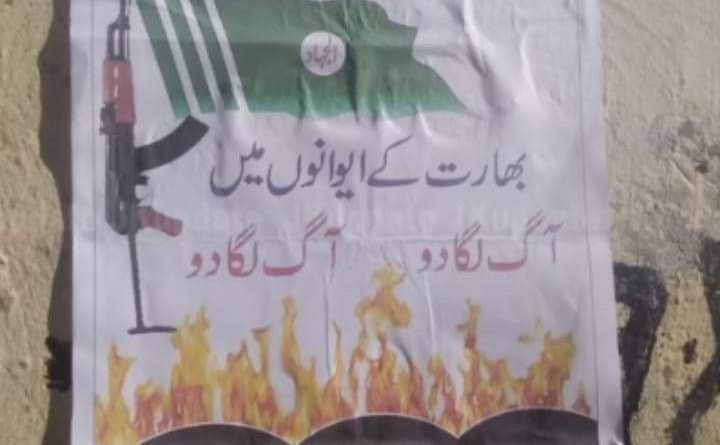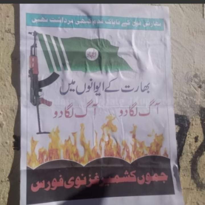 Two posters of the Jammu and Kashmir Ghaznavi Force (JKGF) were found pasted outside shops in the border district”s Azmatabad village on Saturday, they added.