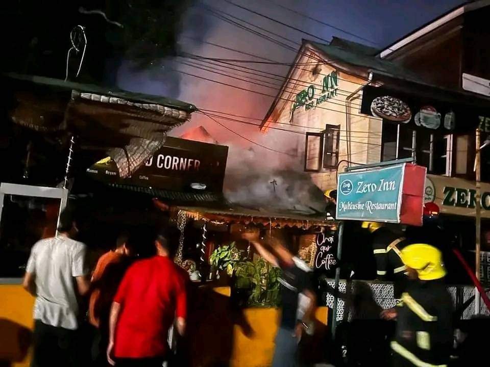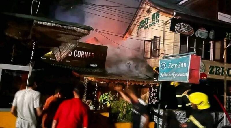A commercial complex near the Zero Bridge caught fire this evening and the flames engulfed two restaurants, the officials said.