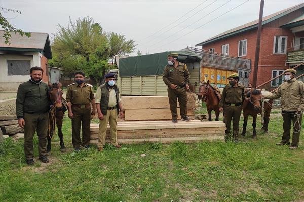 Srinagar, May 4: Forest Protection Force seized 3 horses, timber worth lakhs of rupees in Shopian Forest Division.