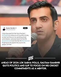 Sharing the information on X (previously Twitter), Gambhir said, “I have requested Hon’ble Party President@JPNadda ji to relieve me of my political duties so that I can focus on my upcoming cricket commitments. I sincerely thank Hon’ble PM@narendramodiji and Hon’ble HM@AmitShahji for giving me the opportunity to serve the people. Jai Hind!