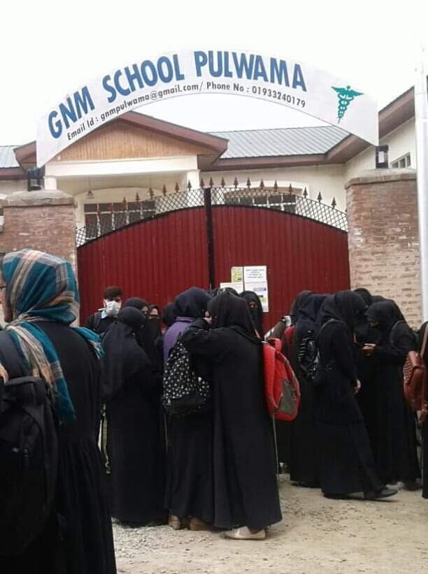 Srinagar: Students of General Nursing and Midwife (GNM) College Pulwama staged a protest outside Chief Medical Officer (CMO) Pulwama’s office, demanding teaching staff in their college. The protesting students blocked the road, but dispersed peacefully after the `assurance from the local SHO to convey their demands to the concerned authorities.