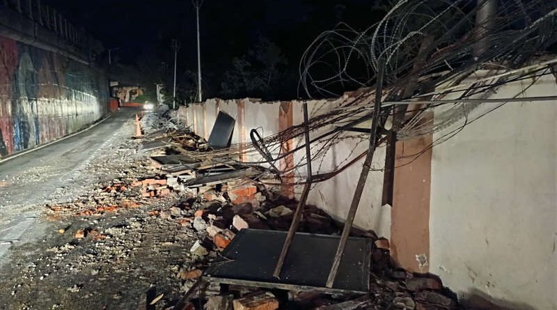 A portion of the civil secretariat’s boundary wall, near the women’s park in the heart of the city, collapsed around 7:20 pm, the officials said.