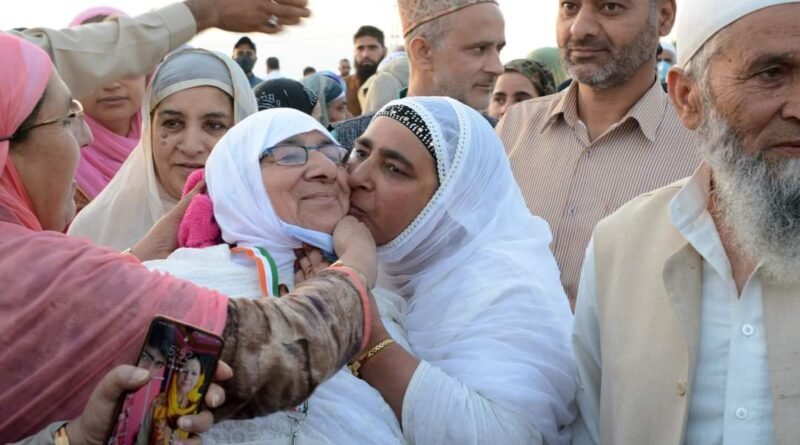 Srinagar, Jun 05: After two years, first batch of Haj pilgrims comprising 145 pilgrims was falgged off from Haj House Srinagar on Sunday.