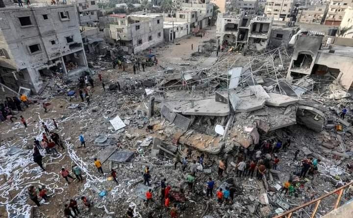“There are still many bodies of martyrs scattered in the streets, under the rubble and around the tents of the displaced that cannot be reached due to the heavy shelling of the occupation (Israeli army) that targeted places and tents in the in Al-Mawasi,” said civil defence spokesman Mahmud Bassal.