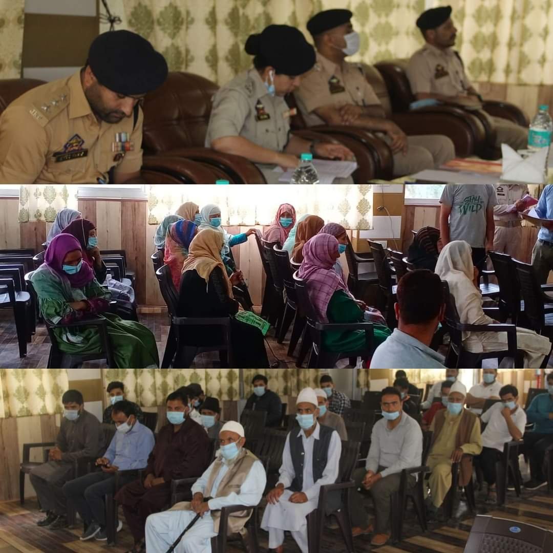 Handwara,30 July 2022: Today on 30 July 2022, a meeting was held with the NOKs of Police martyr’s at DPL Handwara. The meeting was chaired by SP Handwara Ms. Sheema Nabi Qasba-IPS accompanied by ASP Handwara Shri Irshad Hussain-JKPS, besides SDPO Handwara, DySP PC Kralgund and other officers of police Handwara and NOKs of Police martyrs were also present in the meeting