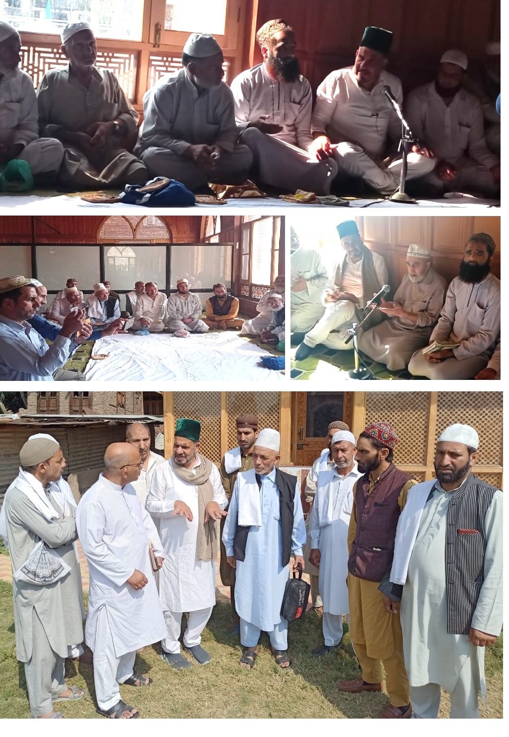 While speaking on the occasion khwaja Renzushah said that such strong spiritual power was hidden inside great saint who had arrived from Kashgar Turkistan to Kashmir that brave kashmiri king of the time Hazrat Sultan Sader ud Deen Rinchanshah RA acknowledged his spiritual sway and accepted Fiqa Sufi Hanafi as best doctrine to be adopted by him and his entire administration including substantial chunk of Kashmir population. This Sufi doctrine established peace and tranquillity in war-ragued Kashmir .Substantial section of Administration and people chose Fiqa Hanafiyat because it allowed local traditions under doctrine of URUF in Hanafi jurisprudence to be part and parcel of faith . Imam khateeb & Nawat khan Moulana javid sahib acknowledged the real contribution of Khwaja Renzushah one decade before for constructing such magnificent structures again for the great saint of Kashmir as forces of hate had rendered the old shrine in shambles.. . Renzushah praised Moulana javid sahib as his spirit is fully possessed with Ishiq e Rasool saw. On this occasion devotees of Tangmarg & Kawoosa, along with Jenab Baba Ghulam Rasool Lasa baab had also arrived. The Nawat khan offered Nawat and Mankabat in love of Great prophet and Hazrat Bulbul Shah. Jenab Zaffar Bhat sahib Gaash, head of Hayat ul Nabi saw Sufi Movement , and also enlightened people about the importance of Hayat e Rasool saw. Jenab Farooq Nuqaati sahib also recited Mankabat devoted to Hazrat Bulbul shah RA. Most revered personality of Bulbul Lankar Jenab Ghulam Nabi Kaing who is bed ridden and ailing for the last two years, got divine energy and suddenly he stood up from his bed and made his presence at concluding hours of such a distinguished Conference(Majlis). He was received amidst chanting slogans of spiritual sway of Great Bulbul shah. People from all nooks and corners had assembled today. Most learned ulma’s and spiritual personalities, scholars of Fiqa Hanafiyat graced today’s Spiritual gathering.
