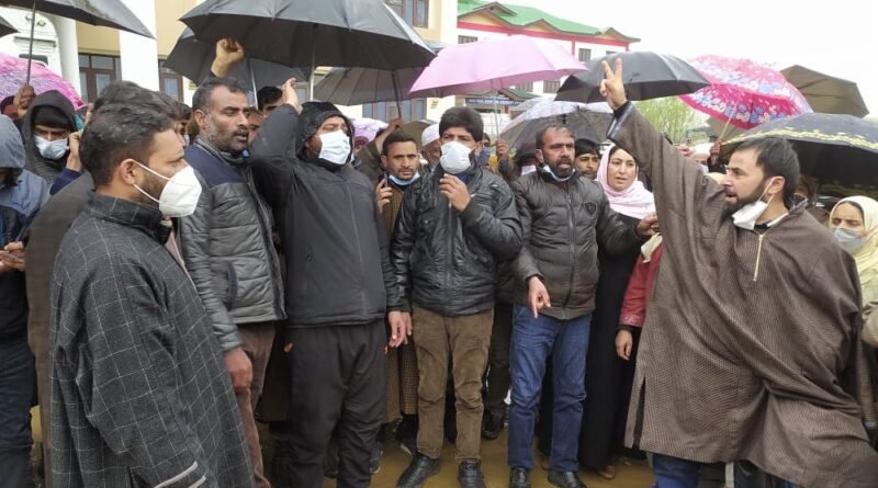 Srinagar, Mar 23: Outraged by the ‘step-motherly approach’ of the authorities concerned, dozens of Health Department daily-wagers staged a protest demonstration demanding release of their minimum wages ‘withheld’ since year 2018.
