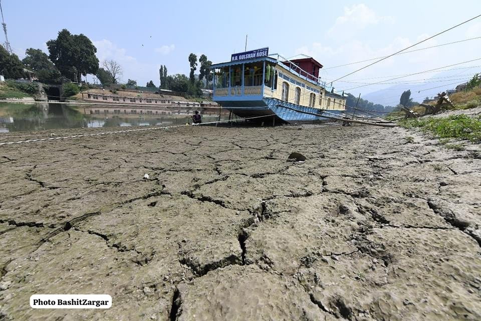 Recent heatwave in Kashmir has led to a significant eduction in the water level of the Jhelum River in Srinagar.