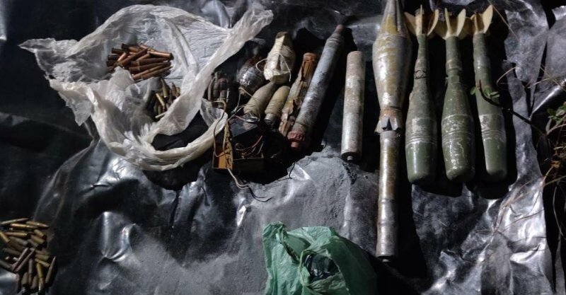 During search two UBGL/ MGL grenades, one Chinese grenade , two No 36 grenades, one RPG Amn, three Mor Bomb, two kgs Gun powder, 250 gm Explosive, 30 Insas rds, 20 Sniper rds and 30 AK 47 Rds were recovered from the hideout.