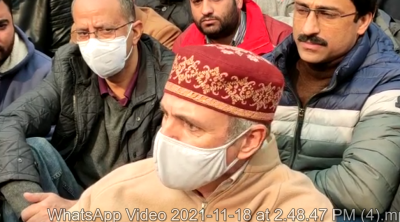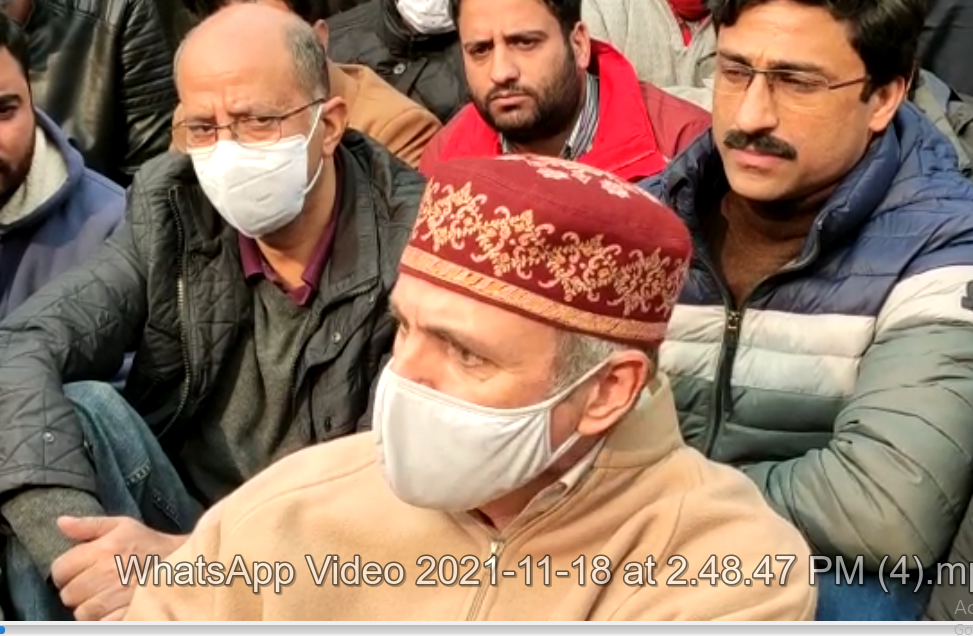 Omar led a sit-in of party leaders at a local park at Sonwar here, a few meters away from his Gupkar residence, against the “government’s denial in handing over bodies of those killed in Hydepora encounter to their families for last rites.”