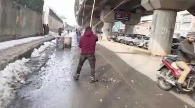 Sources in Srinagar Municipal Corporation told KNT that on the directions of Commissioner SMC, a team was constituted that was equipped with long wooden rods. The team removed all the huge icicles from the Fly-over.