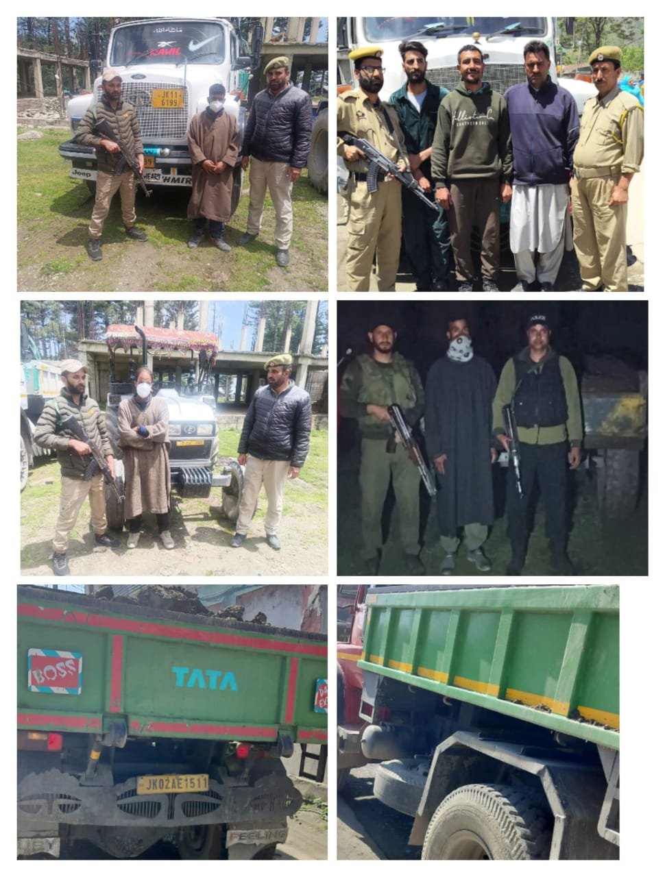 Police parties under the supervision of DySP Hqrs Baramulla/ SDPO Pattan/ Tangmarg assisted by SHO PS Baramulla/ SHO PS Tangmarg & Incharge PP Palhallan seized 6 vehicles (2 tractors and 4 tippers), & arrested 6 drivers involved in illegal mining and transportation of minerals at Khanpora, Shrai & Dargam areas of Baramulla. The accused drivers have been identified as Abdul Hamid Dar son of Ab Khaliq resident of Khanpora, Manzoor Ahmad Dar son of Gh Mohd resident of Ijara Pehlipora, Asif Shafi Dar son of Mohd Shafi resident of Drangbal, Mushtaq Ahmad Magray son of Jalal ud din resident of Shrai, Mohammad Shafi Ganie son of Gh Rasool resident of Gulab Bagh Reram & Waqar Ahmad Bhat son of Mohammad Ramzan resident of Naidkhai.