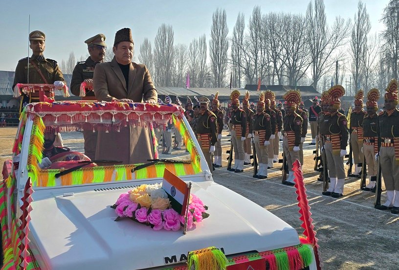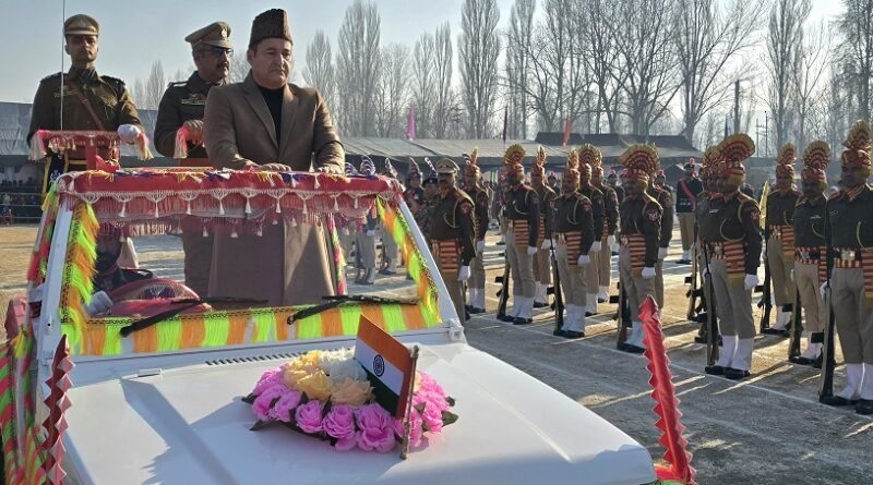BARAMULLA JANUARY 26: The Republic Day celebrations were marked by patriotic zeal and enthusiasm at the District Police Lines, Baramulla where Javed Ahmad Dar, Minister for Agricultural Production, Rural Development, Panchayati Raj, Cooperatives and Elections, hoisted the National Flag, inspected the parade and received salute on March Past.