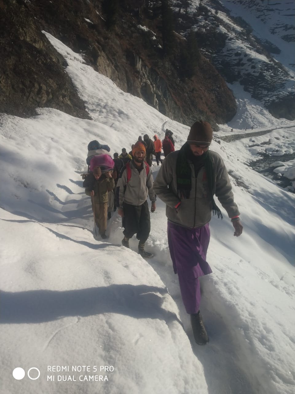 The incharge of Police Station immediately rushed the team of Police to village which is around 10 kilometers away from the Police Station. Due to accumulated snow and continues snowfall, the road to village was not mortorable.