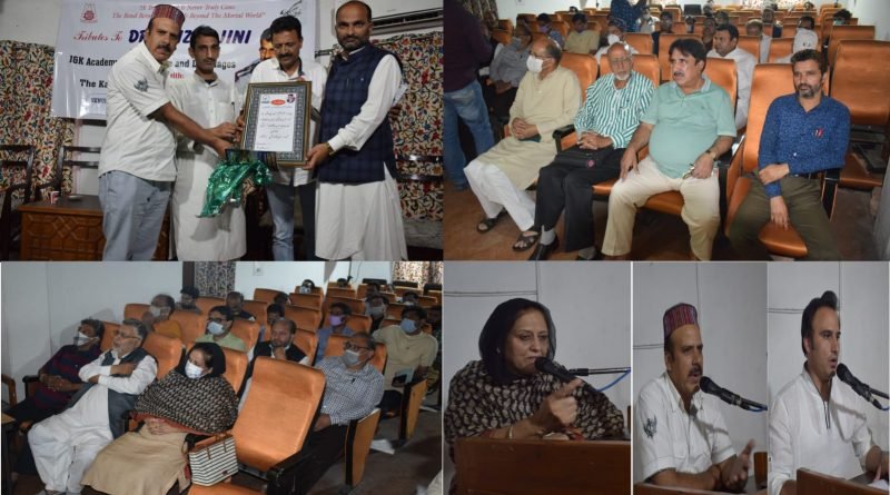 Srinagar Sep 17: Prolific Writer, famous poet, critic and the most proficient literary activist of J&K Dr Aziz Hajini was remembered by scores of Artists, Poets and literary personalities in an impressive function jointly organised by J&K Academy Of Art, Culture and Languages and Kashmir Music Club Srinagar at the Seminar Hall of J&K Cultural Academy here.