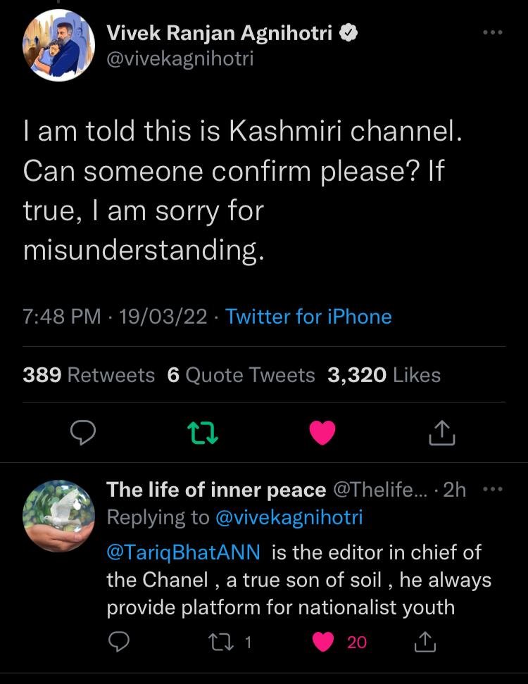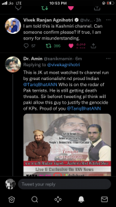 “I am told this is Kashmiri channel. Can someone confirm please? If true, I am sorry for misunderstanding,” he tweeted immediately the first tweet in question.